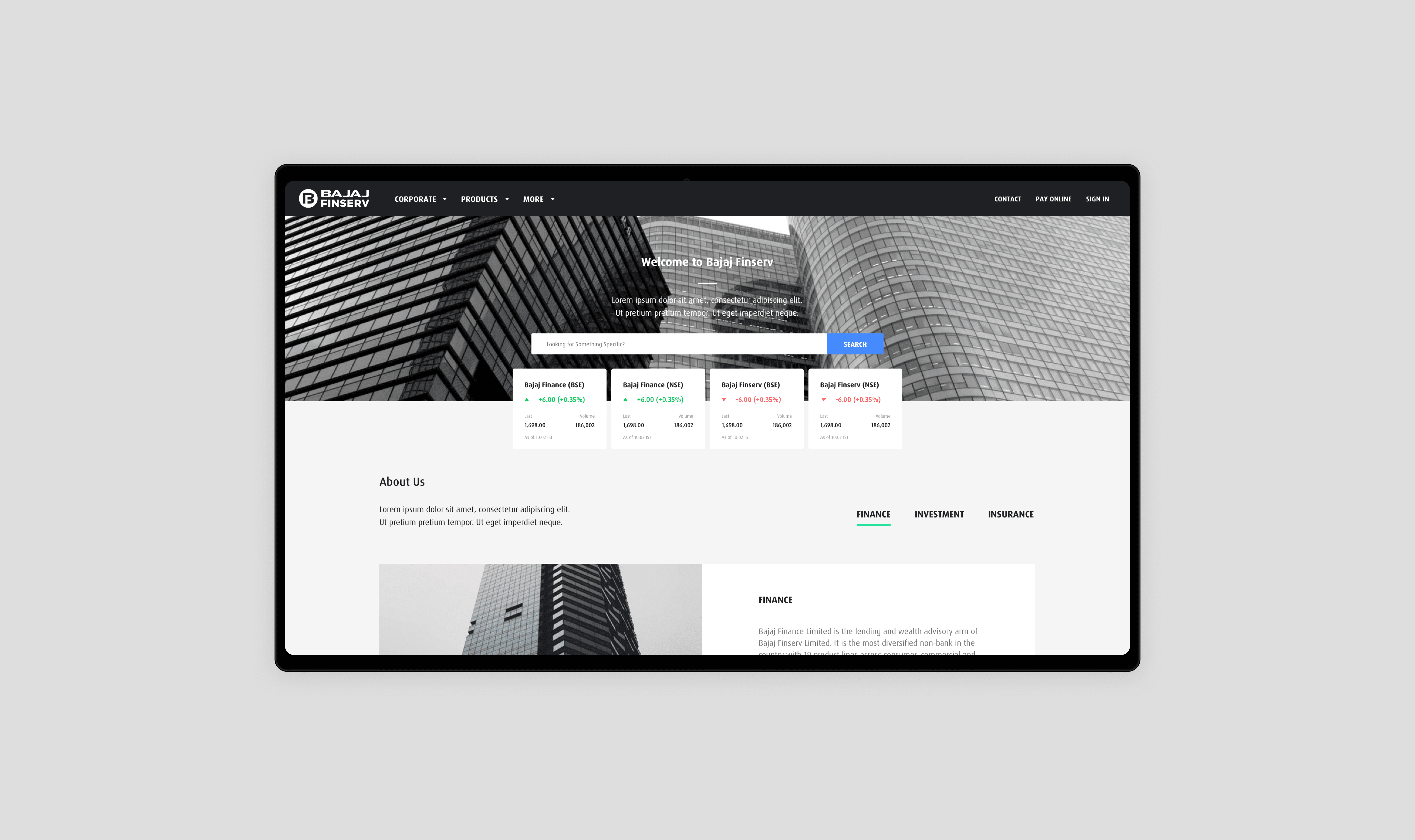 The Bajaj Finserv website ↗ sees an average of nearly 2 million users a month. It is largely responsible for a major fraction of their business. It is their gateway to invite both existing and prospective customers to learn about and interact with their offerings. It also serves as a portfolio for investors and stakeholders to engage confidently with their brand.