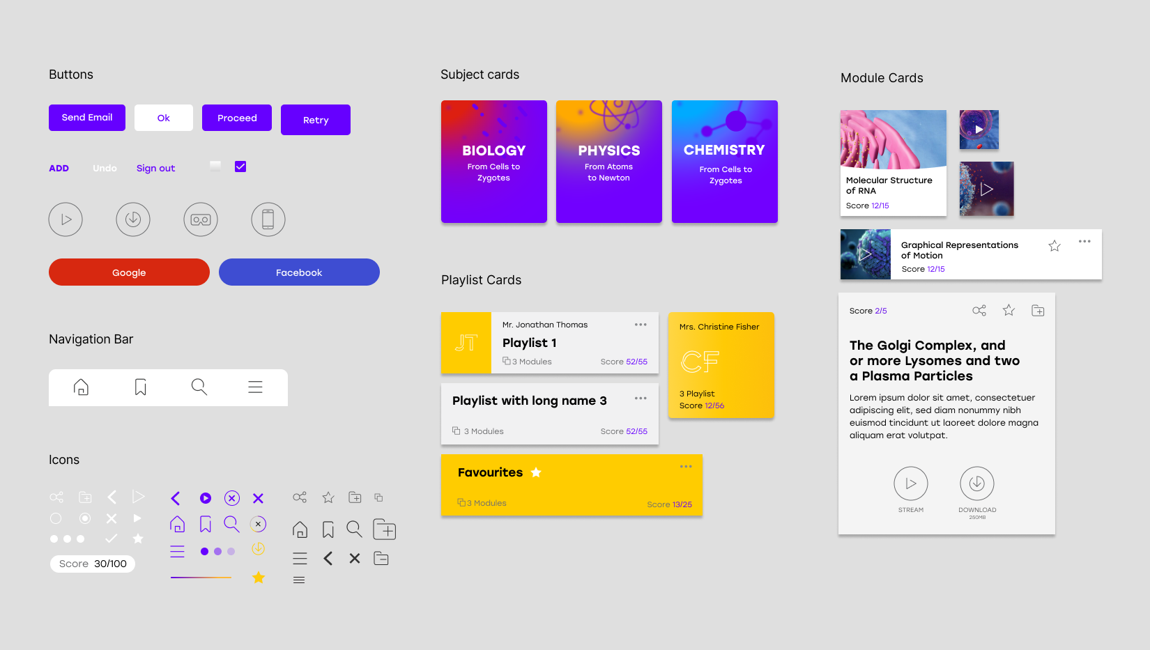 Balancing class-based curriculum requirements with the ability for students to design and curate their own subject playlists to learn, revise or simply stay curious. Students could follow a lesson plan prescribed by teachers or combine modules across subjects into free-flowing playlists that would also be sharable within wider peer groups. Teachers could easily curate and assign modules across their classes. Search-ability of modules was augmented to include due-dates for upcoming assigments, exams that enabled students to be on top of things amidst multiple course requirements and assigments.
