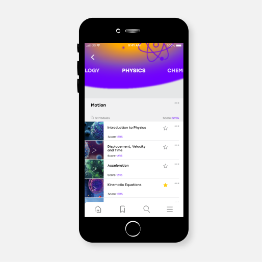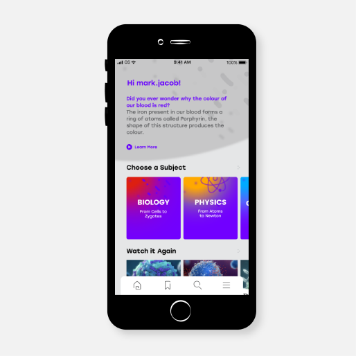 Balancing class-based curriculum requirements with the ability for students to design and curate their own subject playlists to learn, revise or simply stay curious. Students could follow a lesson plan prescribed by teachers or combine modules across subjects into free-flowing playlists that would also be sharable within wider peer groups. Teachers could easily curate and assign modules across their classes. Search-ability of modules was augmented to include due-dates for upcoming assigments, exams that enabled students to be on top of things amidst multiple course requirements and assigments.